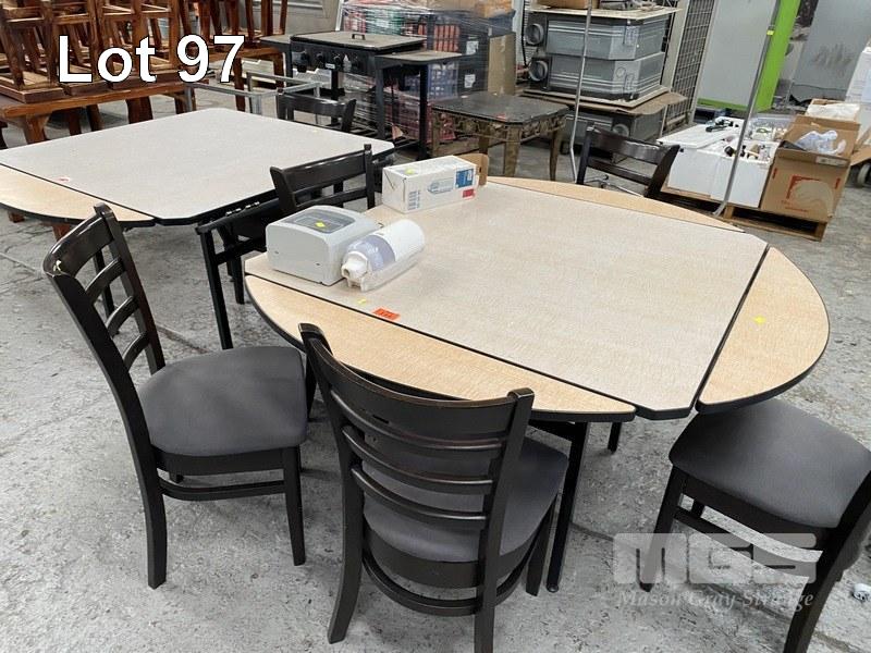 PAIR FOLD OUT TABLES, 110 x 110cm & 6 x CHAIRS