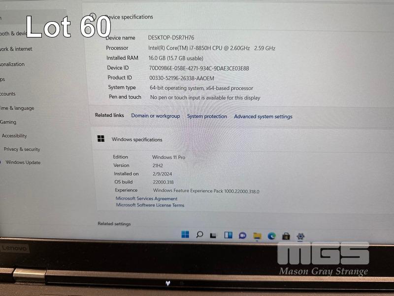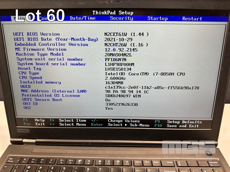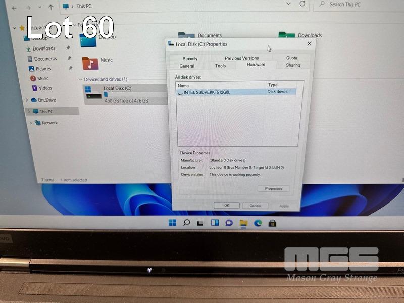 LAPTOP, LENOVO THINKPAD P52 MOBILE WORKSTATION, TYPE 20MA, CORE i7 8850H (8TH GEN) @ 2.6GHz, 16GB DDR4 RAM, 512GB NVMe M.2 SSD, 15.6" WIDESCREEN (1920x1080), 4GB NVIDIA QUADRO P2000 VIDEO, Wi-Fi, BLUETOOTH, WINDOWS 11 PRO INSTALLED & POWER SUPPLY (NOTE: MARKS ON SCREEN) S/N:PF1D6N7N