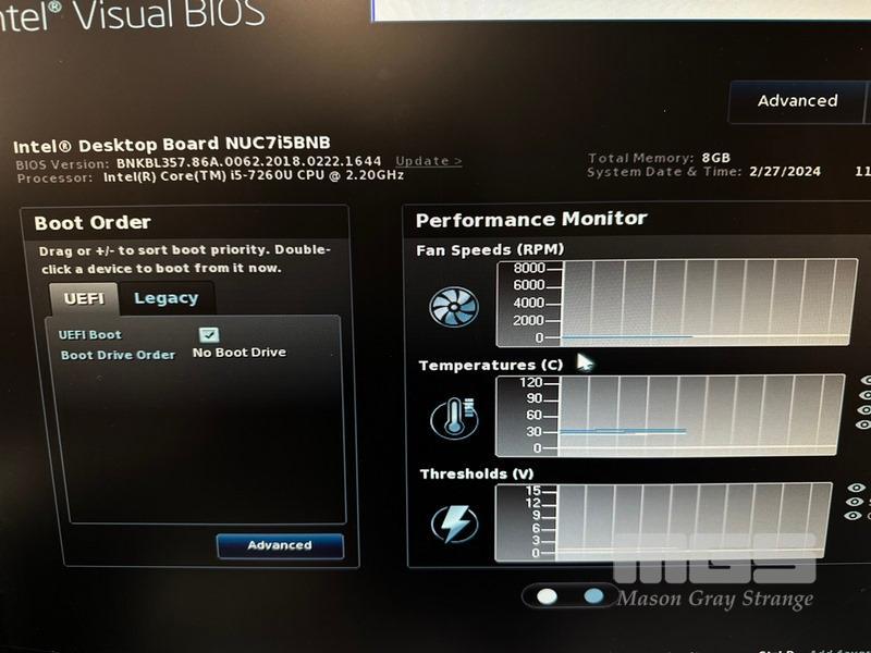 DESKTOP PC, INTEL NUC7i5BNH MINI, CORE i5 7260U (7TH GEN) @ 2.2GHz, 8GB DDR4 RAM, 120GB M.2 SSD, Wi-Fi, BLUETOOTH, WINDOWS 10 PRO INSTALLED & POWER SUPPLY (NO KEYBOARD, NO MOUSE) S/N:G6BN8330094Y