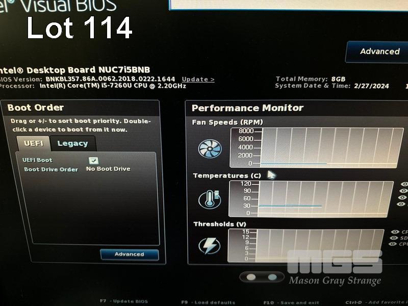 DESKTOP PC, INTEL NUC7i5BNH MINI, CORE i5 7260U (7TH GEN) @ 2.2GHz, 8GB DDR4 RAM, 120GB M.2 SSD, Wi-Fi, BLUETOOTH, WINDOWS 10 PRO INSTALLED & POWER SUPPLY (NO KEYBOARD, NO MOUSE) S/N:G6BN83900GW7