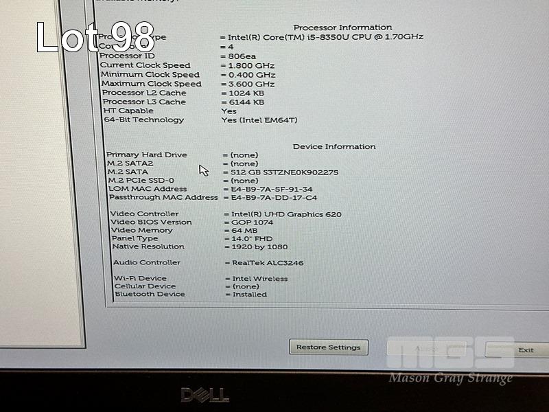 LAPTOP, DELL LATITUDE 5490, CORE i5 8350U (8TH GEN) @ 1.7GHz, 8GB DDR4 RAM, 512GB M.2 SSD, 14" WIDESCREEN (1920x1080), INTEL UHD GRAPHICS 620, Wi-Fi, BLUETOOTH, WINDOWS 11 HOME INSTALLED & POWER SUPPLY S/N:93J6KR2