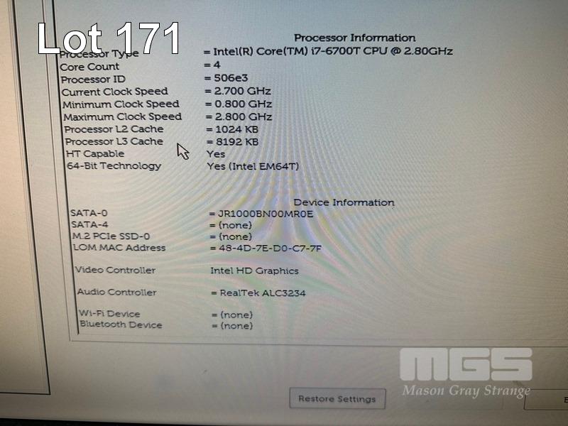 DESKTOP PC, DELL OPTIPLEX 7040 MICRO, CORE i7 6700T (6TH GEN) @ 2.8GHz, 16GB DDR4 RAM, 1TB SATA HDD, INTEL HD VIDEO, 6 x USB, WINDOWS 10 HOME INSTALLED & POWER SUPPLY (65W) (NO KEYBOARD, NO MOUSE) S/N:78M4VG2