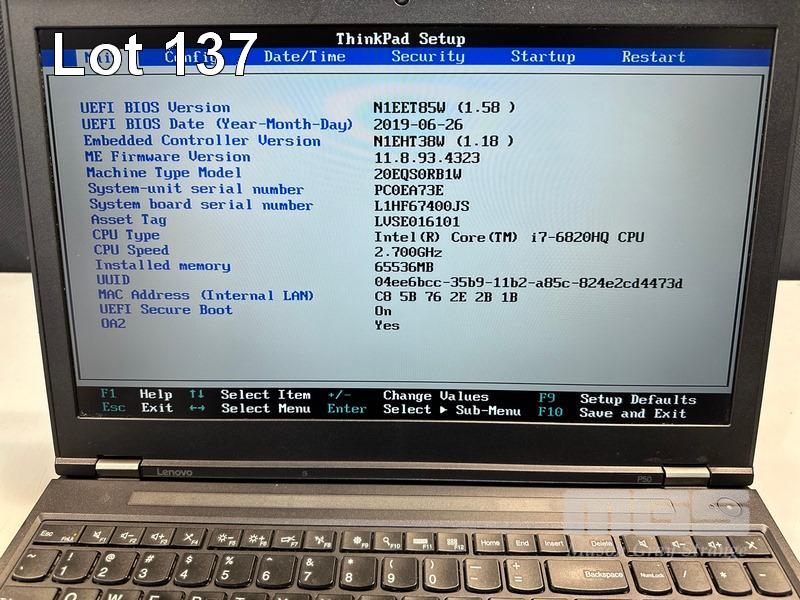 LAPTOP, LENOVO THINKPAD P50 MOBILE WORKSTATION, TYPE 20EQ, CORE i7 6820HQ (6TH GEN) @ 2.7GHz, 64GB DDR4 RAM, 512GB SSD, 15.6" WIDESCREEN (1920x1080), 4GB NVIDIA QUADRO M2000M VIDEO, Wi-Fi, BLUETOOTH, WINDOWS 10 PRO INSTALLED & POWER SUPPLY S/N:PC0EA73E