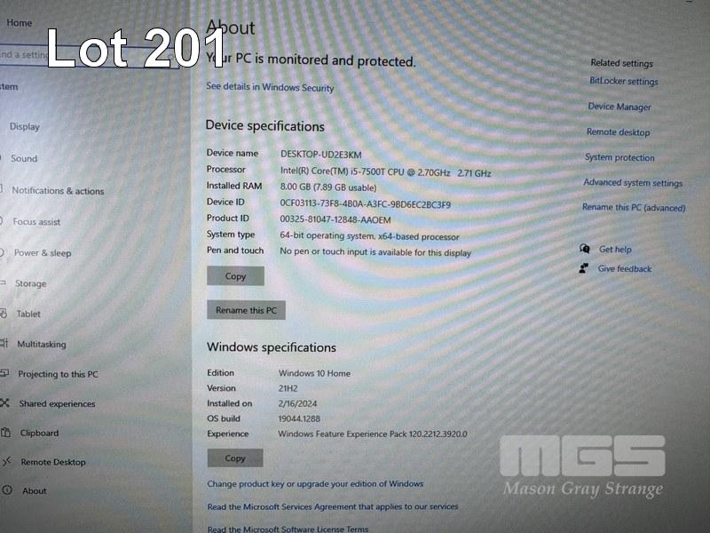 TINY-IN-ONE PC, LENOVO THINKCENTRE M710q, CORE i5 7500T (7TH GEN) @ 2.7GHz, 8GB DDR4 RAM, 256GB NVMe M.2 SSD, TIO24Gen3 23.8" LED-BL LCD WIDESCREEN, WEBCAM, Wi-Fi, WINDOWS 10 HOME INSTALLED & POWER SUPPLY (NO KEYBOARD, NO MOUSE) S/N:PC0SCU53