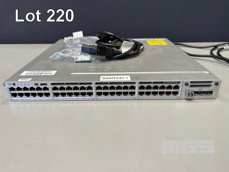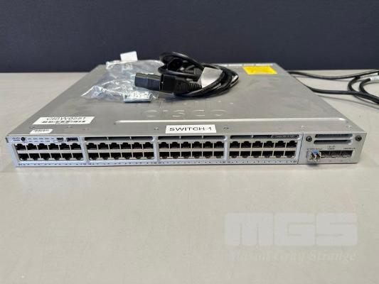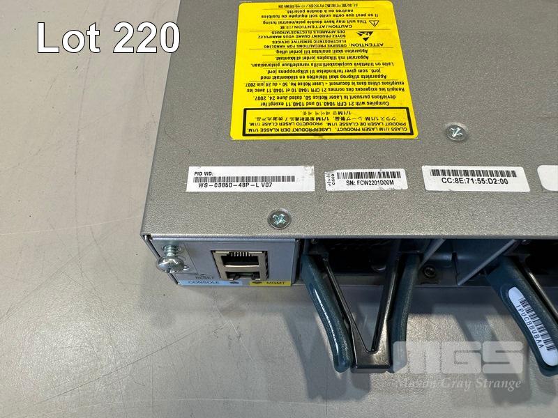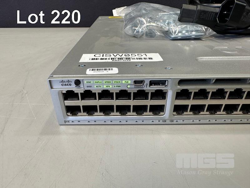 CISCO CATALYST 3850 48 PoE+ 48-PORT SWITCH, WS-C3850-48P-L V07 C3850-NM-4-1G NETWORK MODULE, 2 x PWR-C1-715WAC PSU WITH ICE-C14 TO C15 NOTCH POWER CABLES S/N:FCW2201D00M