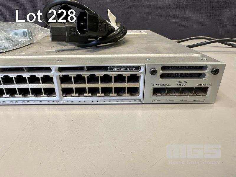 CISCO CATALYST 3850 48 PoE+ 48-PORT SWITCH, WS-C3850-48P-L V06 C3850-NM-4-1G NETWORK MODULE, 2 x PWR-C1-715WAC PSU WITH ICE-C14 TO C15 NOTCH POWER CABLES S/N:FCW1951F15K