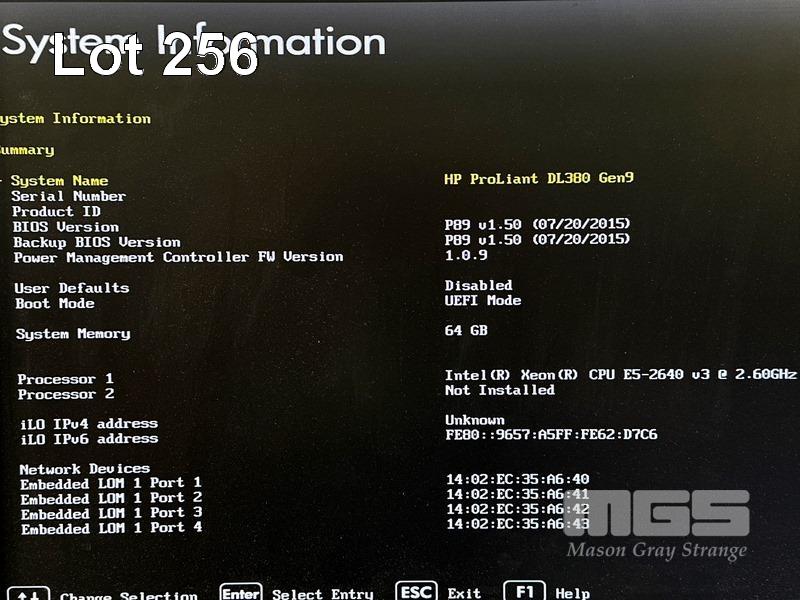 RACKMOUNT SERVER, HP PROLIANT DL380 Gen9, 2U, XEON E5-2640 v3 @ 2.6GHz, 64GB ECC DDR4 RAM, NO HDD, 2 x 500W PSU WITH RAILS (NO CABLES) (NOTE: MESSAGE "HP SMART STORAGE BATTERY 1 FAILURE")