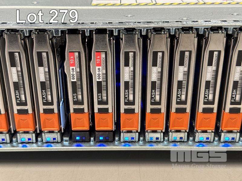 RACKMOUNT STORAGE ARRAY, EMC, MODEL SAE, 2U, 17 x 100GB SAS SSD, 2 x 600GB SAS HDD, 2 x CONTROLLERS, 2 x PSU (NO CABLES) S/N:JWXED132800088