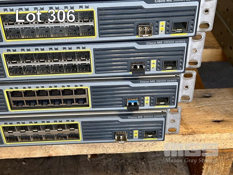 5 x CISCO ME 3600X SERIES 24-PORT SWITCHES, ME-3600X-24FS-M V01, 1 x PSU 1 x CISCO ME 3600X SERIES 24-PORT SWITCHES, ME-3600X-24TS-M V01, 1 x PSU S/N:FOC1549V3JP, FOC1549X1Y9, FOC1548X451, FOC1722X48X, N/A, N/A