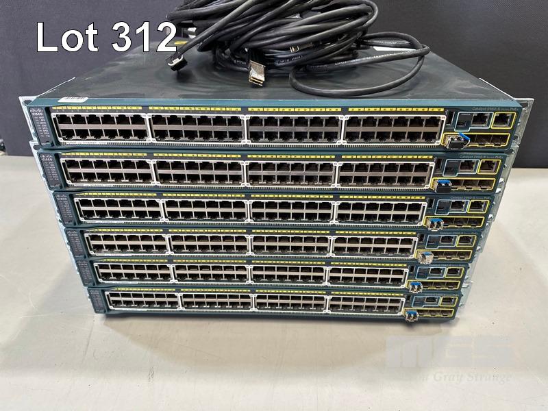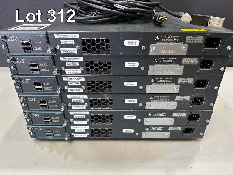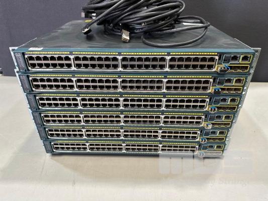 6 x CISCO CATALYST 2960-S SERIES PoE+ 48-PORT SWITCHES, WS-C2960S-48LPS-L V03 WITH C2960S-STACK MODULES & STACKING CABLES S/N:FOC1714Y1D6, FOC1714X0MV, FOC1714X0NY, FOC1714Y1DH, FOC1714Y1DA, FOC1714Y15G