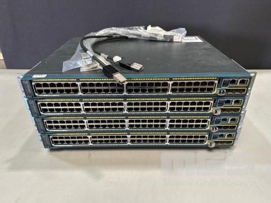 4 x CISCO CATALYST 2960-S SERIES PoE+ 48-PORT SWITCHES, WS-C2960S-48LPS-L V04 WITH C2960S-STACK MODULES & STACKING CABLES S/N:FOC1803V3FU, FOC1737Z2XP, FOC1741Z14S, FOC1741Z134