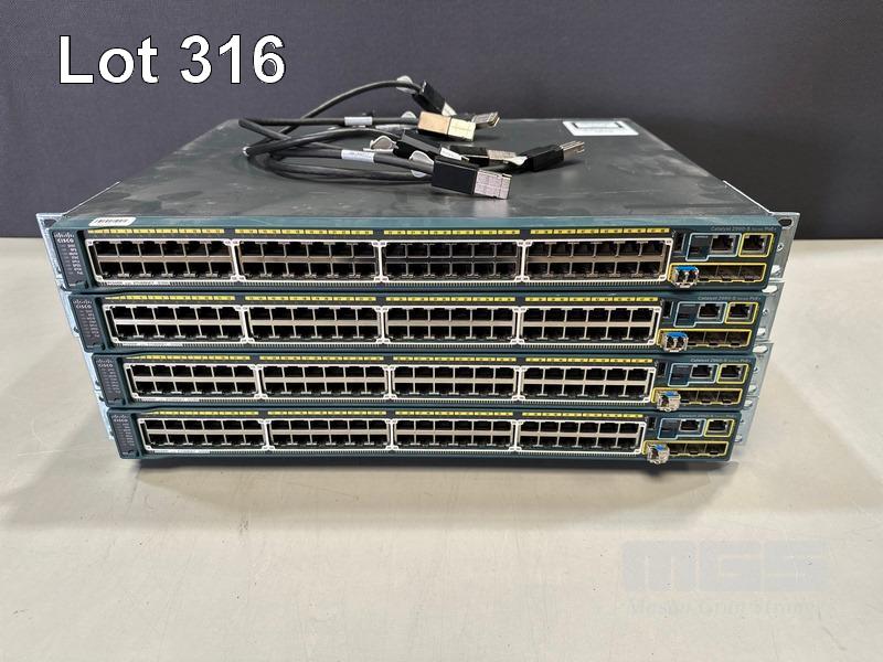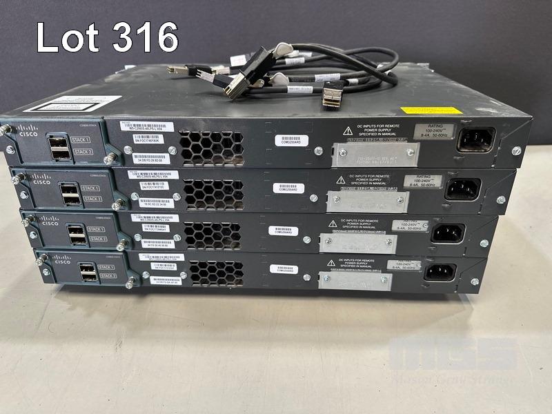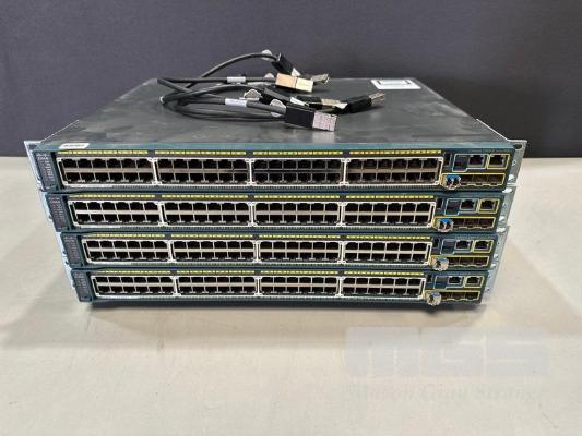 4 x CISCO CATALYST 2960-S SERIES PoE+ 48-PORT SWITCHES, WS-C2960S-48LPS-L V04 WITH C2960S-STACK MODULES & STACKING CABLES S/N:FOC1746YA0K, FOC1741Z12C, FOC1739W04Y, FOC1737Z357