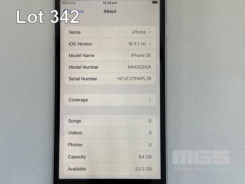 APPLE iPHONE SE, 64GB, WHITE, MODEL MHGQ3X/A (NO CABLE, NO CHARGER) S/N:HCVFJ79WPLJR