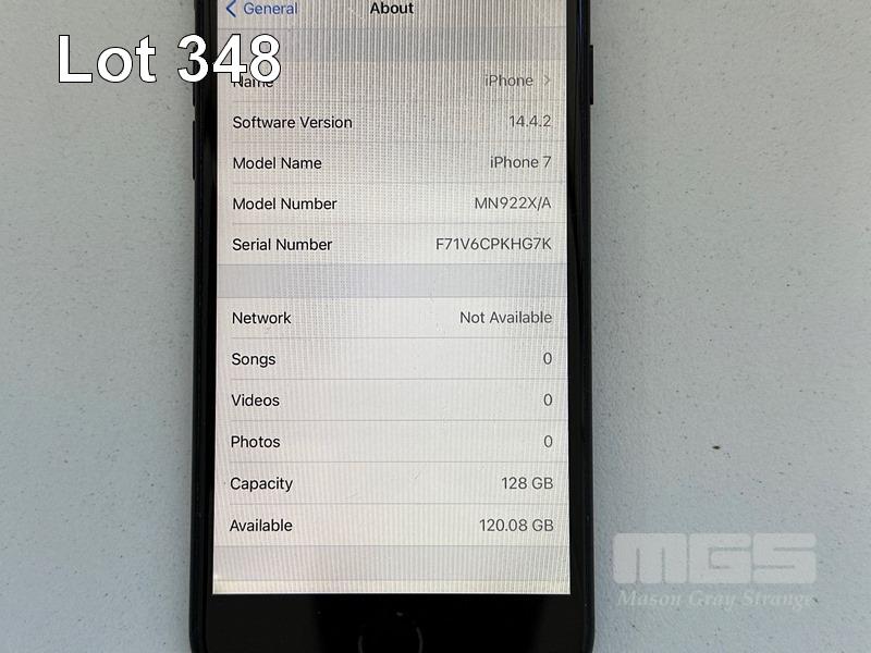 APPLE iPHONE 7, 128GB, BLACK, MODEL MN922X/A (NO CABLE, NO CHARGER) S/N:F71V6CPKHG7K