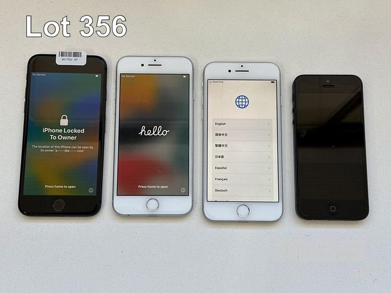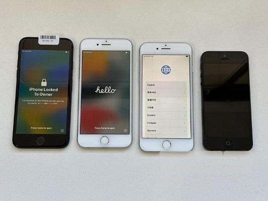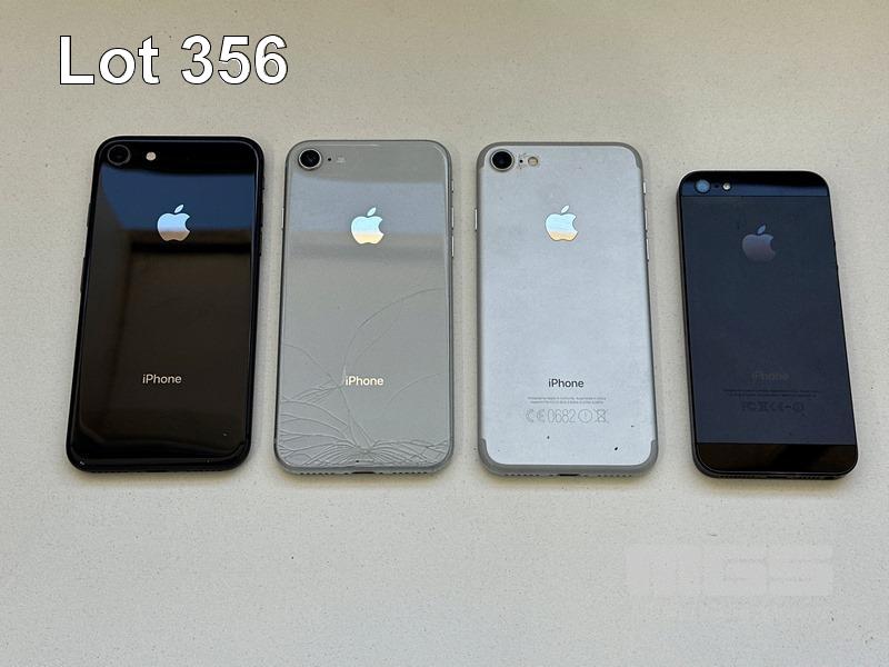 4 x APPLE iPHONES - ALL LOCKED - APPLE iPHONE 8, 64GB, BLACK (iCLOUD LOCKED) - APPLE iPHONE 8, 64GB, SILVER (DAMAGED, iCLOUD LOCKED) - APPLE iPHONE 7, 128GB, SILVER, A1778 (iCLOUD LOCKED) - APPLE iPHONE 5, 32GB, A1429 (FAULTY) (NO CABLE, NO CHARGER) S/N:FFMXK28NJC6C, C8PVP38ZJC6D, F4GT78G7HG7L, 013553000093016