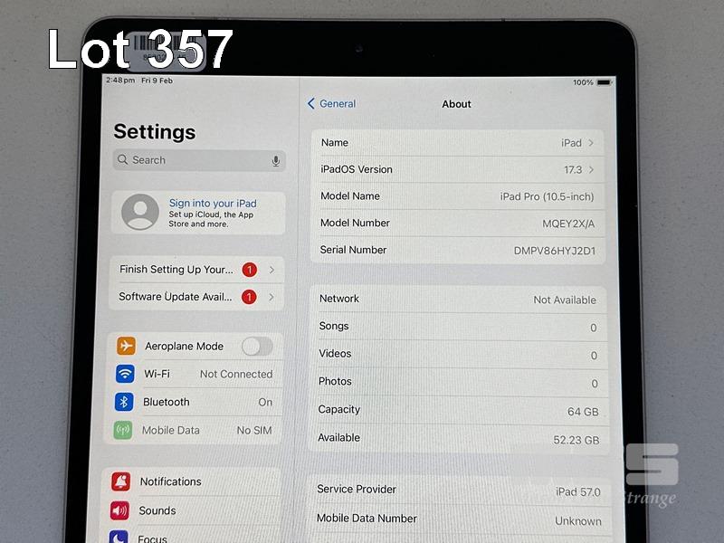APPLE iPAD PRO, 10.5", 64GB, Wi-Fi, CELLULAR, SPACE GREY, MQEY2X/A, MODEL A1709 (NO CABLE, NO CHARGER) S/N:DMPV86HYJ2D1