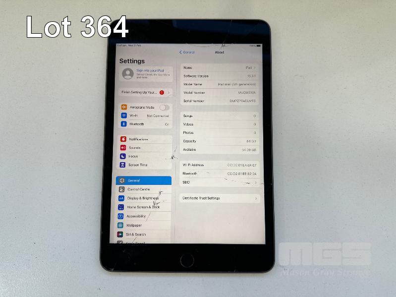 8 x APPLE iPADS - ALL VARIOUS FAULTS - APPLE iPAD 7TH GEN, 32GB, A2197 (DAMAGED SCREEN) - APPLE iPAD AIR 2, A1566 (iCLOUD LOCKED, SWOLLEN BATTERY) - APPLE iPAD 7TH GEN, 32GB, A2197 (DAMAGED, FAULTY) - APPLE iPAD 7TH GEN, 32GB, A2197 (DAMAGED, FAULTY) - APPLE iPAD MINI 5TH GEN, 64GB A2133 (DAMAGED SCREEN) - APPLE iPAD AIR, 16GB, A1474 (SCREEN BLEMISH) - APPLE iPAD AIR, 16GB, A1474 (iCLOUD LOCKED, DAMAGED) - APPLE iPAD MINI 5TH GEN, 64GB A2133 (DAMAGED SCREEN) (NO CABLES, NO CHARGERS)