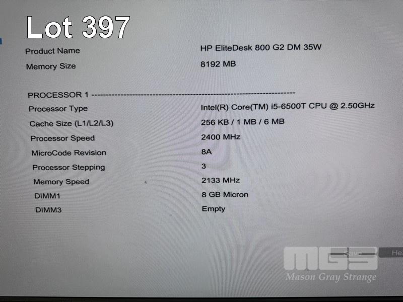 DESKTOP PC, HP ELITEDESK 800 G2 DM 35W MINI PC, CORE i5 6500T (6TH GEN) @ 2.5GHz, 8GB DDR4 RAM, 500GB SATA HDD, WINDOWS 10 HOME INSTALLED & POWER SUPPLY (NO KEYBOARD, NO MOUSE) S/N:AUD64806R6