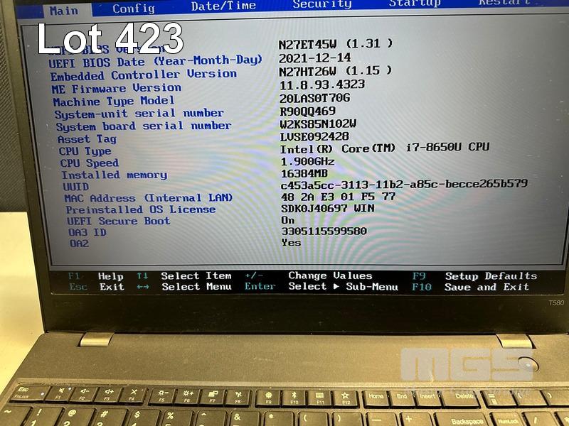 LAPTOP, LENOVO THINKPAD T580, TYPE 20LA, CORE i7 8650U (8TH GEN) @ 1.9GHz, 16GB DDR4 RAM, 512GB NVMe M.2 SSD, 15.6" WIDESCREEN (1920x1080), INTEL UHD GRAPHICS, Wi-Fi, BLUETOOTH, WINDOWS 11 PRO INSTALLED (NO USB-C POWER SUPPLY) (NOTE: MINOR DAMAGE TO CASING, MISSING "Fn" KEY) S/N:R90QQ469