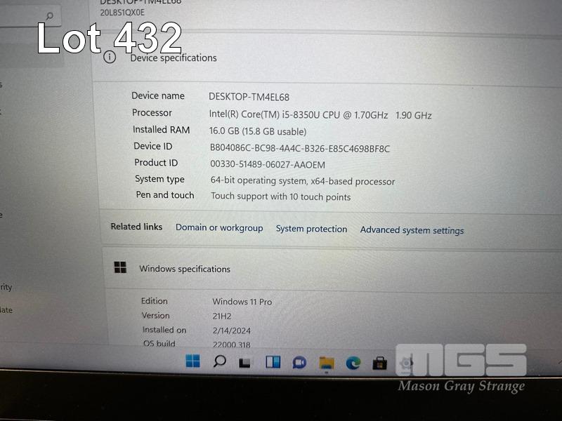 LAPTOP, LENOVO THINKPAD T480s, TYPE 20L8, CORE i5 8350U (8TH GEN) @ 1.7GHz, 16GB DDR4 RAM, 256GB NVMe M.2 SSD, 14" TOUCHSCREEN (1920x1080), INTEL HD VIDEO, Wi-Fi, BLUETOOTH, WINDOWS 11 PRO INSTALLED (NO USB-C POWER SUPPLY) (NOTE: MINOR MARKS ON SCREEN) S/N:PC0Y2WLT