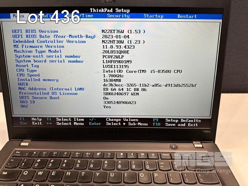 LAPTOP, LENOVO THINKPAD T480s, TYPE 20L8, CORE i5 8350U (8TH GEN) @ 1.7GHz, 16GB DDR4 RAM, 256GB NVMe M.2 SSD, 14" TOUCHSCREEN (1920x1080), INTEL HD VIDEO, Wi-Fi, BLUETOOTH, WINDOWS 11 PRO INSTALLED (NO USB-C POWER SUPPLY) (NOTE: MINOR DAMAGE TO CASING, MARKS ON SCREEN) S/N:PC0Y2WLP