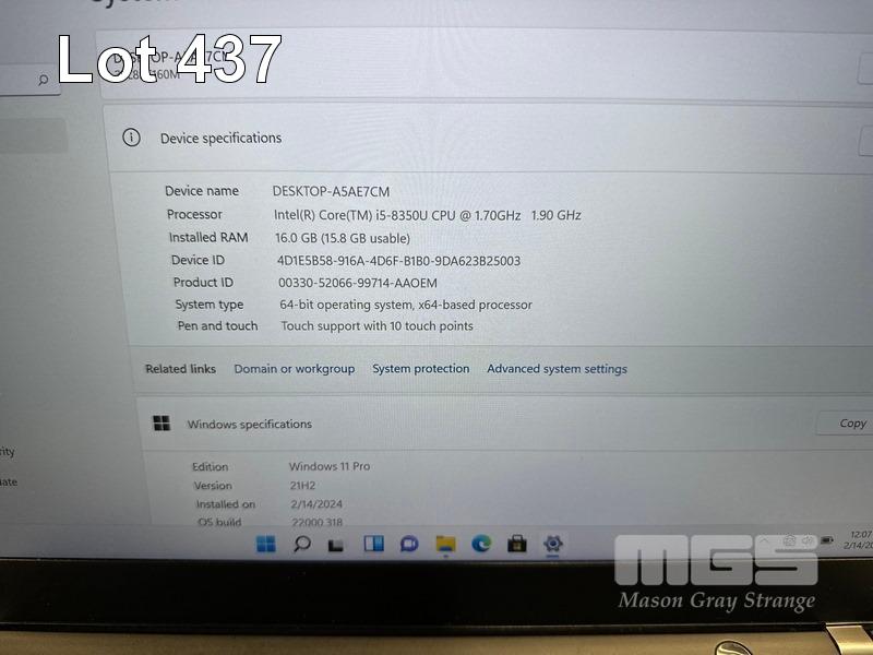LAPTOP, LENOVO THINKPAD T480s, TYPE 20L8, CORE i5 8350U (8TH GEN) @ 1.7GHz, 16GB DDR4 RAM, 256GB NVMe M.2 SSD, 14" TOUCHSCREEN (1920x1080), INTEL HD VIDEO, Wi-Fi, BLUETOOTH, WINDOWS 11 PRO INSTALLED (NO USB-C POWER SUPPLY) (NOTE: MINOR DAMAGE TO CASING, MARKS ON SCREEN) S/N:PC1698WM