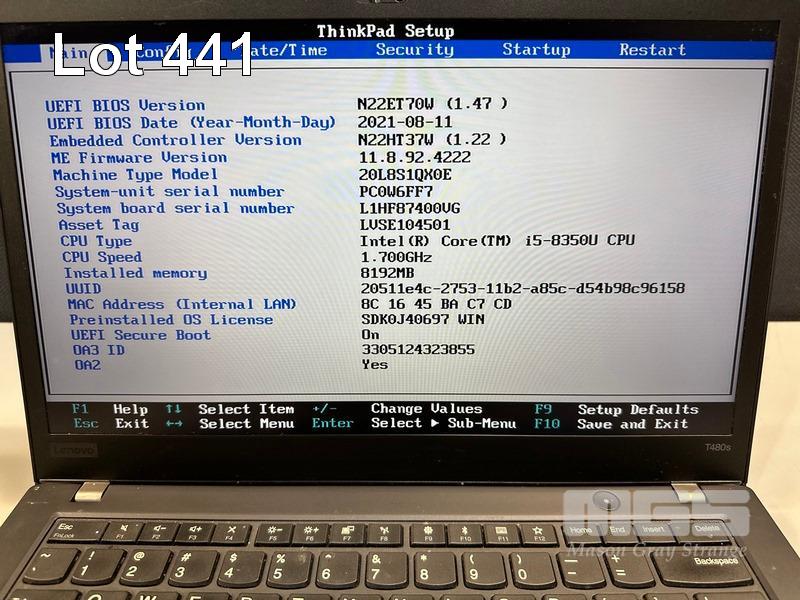 LAPTOP, LENOVO THINKPAD T480s, TYPE 20L8, CORE i5 8350U (8TH GEN) @ 1.7GHz, 8GB DDR4 RAM, 250GB NVMe M.2 SSD, 14" TOUCHSCREEN (1920x1080), INTEL HD VIDEO, Wi-Fi, BLUETOOTH, WINDOWS 11 PRO INSTALLED (NO USB-C POWER SUPPLY) (NOTE: BRIGHT SPOTS ON SCREEN) S/N:PC0W6FF7