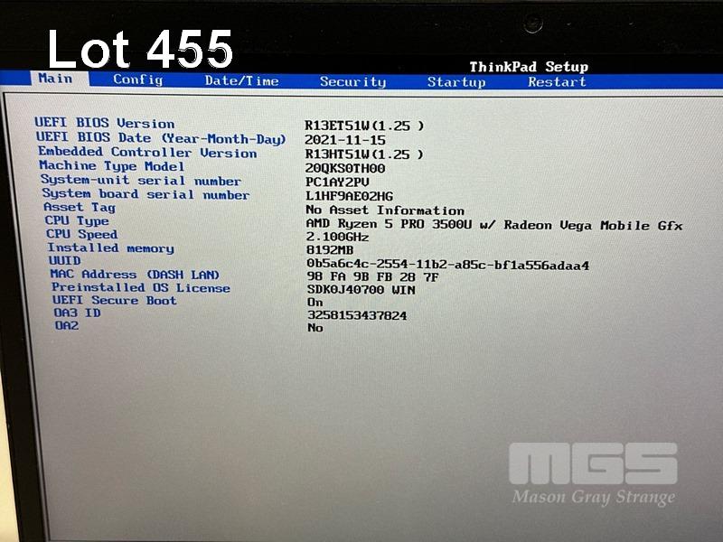 LAPTOP, LENOVO THINKPAD T495s, TYPE 20QK, AMD RYZEN 5 PRO 3500U WITH RADEON VEGA MOBILE GFX @ 2.1GHz, 8GB DDR4 RAM, 256GB NVMe M.2 SSD, 14" TOUCHSCREEN (1920x1080), Wi-Fi, BLUETOOTH, WINDOWS 11 HOME INSTALLED (NO USB-C POWER SUPPLY) (NOTE: MARKS ON SCREEN) S/N:PC1AY2PV