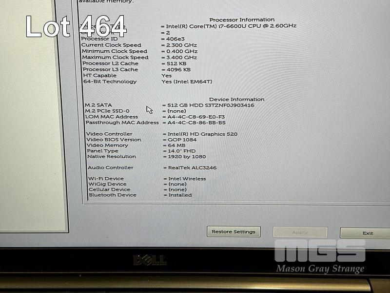 LAPTOP, DELL LATITUDE 7480, CORE i7 6600U (6TH GEN) @ 2.6GHz, 16GB DDR4 RAM, 512GB M.2 SSD, 14" WIDESCREEN (1920x1080), INTEL HD GRAPHICS 520, Wi-Fi, BLUETOOTH, WINDOWS 10 HOME INSTALLED (NO POWER SUPPLY) (NOTE: BATTERY NOT HOLDING CHARGE) S/N:6DKDQH2