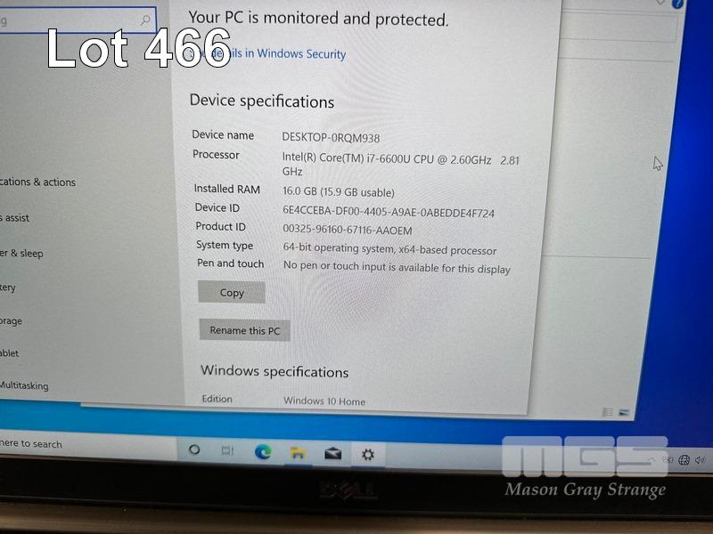 LAPTOP, DELL LATITUDE 7480, CORE i7 6600U (6TH GEN) @ 2.6GHz, 16GB DDR4 RAM, 512GB M.2 SSD, 14" WIDESCREEN (1920x1080), INTEL HD GRAPHICS 520, Wi-Fi, BLUETOOTH, WINDOWS 10 HOME INSTALLED (NO POWER SUPPLY) (NOTE: NO BATTERY, MESSAGE ON STARTUP "ALERT TPM COULD NO BE INITIALISED") S/N:3ZV28H2