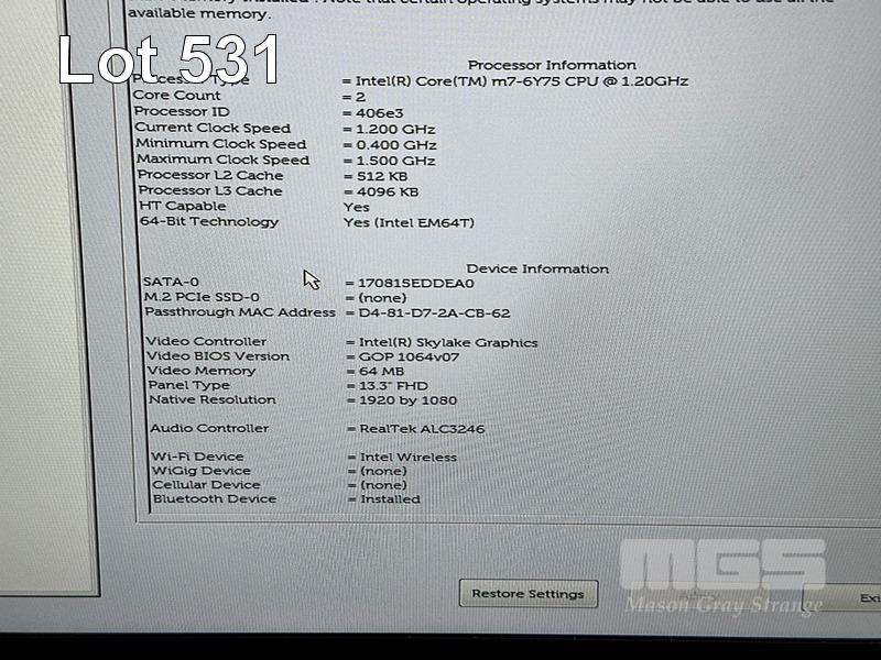 LAPTOP, DELL LATITUDE 7370, CORE m7-6Y75 (6TH GEN) @ 1.2GHz, 16GB DDR3 RAM, 512GB M.2 SSD, 13.3" WIDESCREEN (1920x1080), INTEL HD GRAPHICS 515, Wi-Fi, BLUETOOTH, WINDOWS 10 PRO INSTALLED & USB-C POWER SUPPLY S/N:D54SYF2
