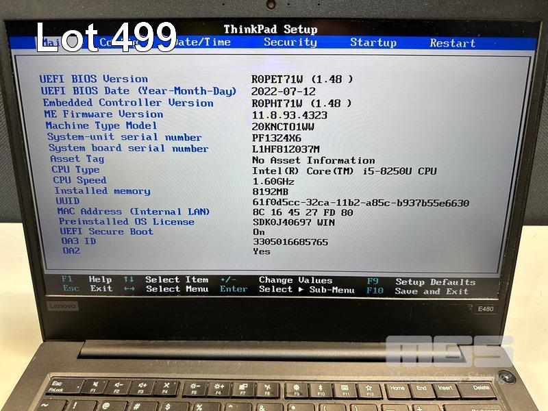 LAPTOP, LENOVO THINKPAD E480, TYPE 20KN, CORE i5 8250U (8TH GEN) @ 1.6GHz, 8GB DDR4 RAM, 256GB NVMe M.2 SSD, 14" WIDESCREEN (1920x1080), INTEL HD VIDEO, Wi-Fi, BLUETOOTH, WINDOWS 11 PRO INSTALLED & USB-C POWER SUPPLY (NOTE: MINOR MARKS ON SCREEN) S/N:PF13Z4X6