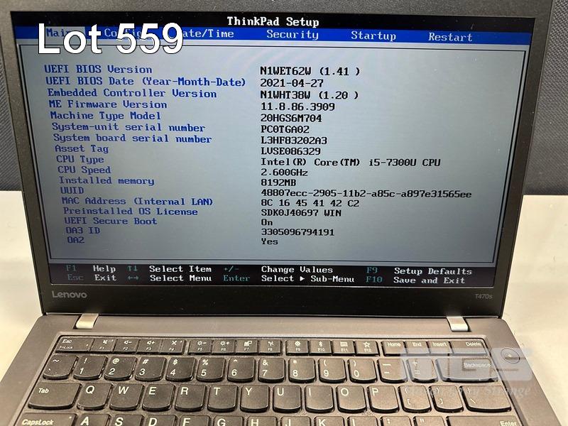 LAPTOP, LENOVO THINKPAD T470s, TYPE 20HG, CORE i5 7300U (7TH GEN) @ 2.6GHz, 8GB DDR4 RAM, 256GB NVMe M.2 SSD, 14" TOUCHSCREEN (1920x1080), INTEL HD VIDEO, Wi-Fi, BLUETOOTH, WINDOWS 10 PRO INSTALLED & POWER SUPPLY S/N:PC0TGA02