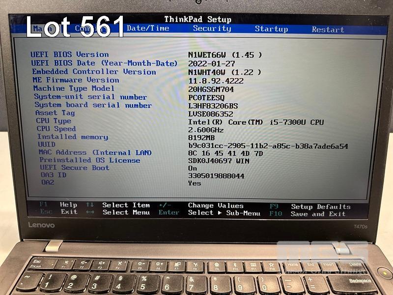 LAPTOP, LENOVO THINKPAD T470s, TYPE 20HG, CORE i5 7300U (7TH GEN) @ 2.6GHz, 8GB DDR4 RAM, 256GB NVMe M.2 SSD, 14" TOUCHSCREEN (1920x1080), INTEL HD VIDEO, Wi-Fi, BLUETOOTH, WINDOWS 10 PRO INSTALLED & POWER SUPPLY (NOTE: MINOR MARKS ON SCREEN) S/N:PC0TEESQ