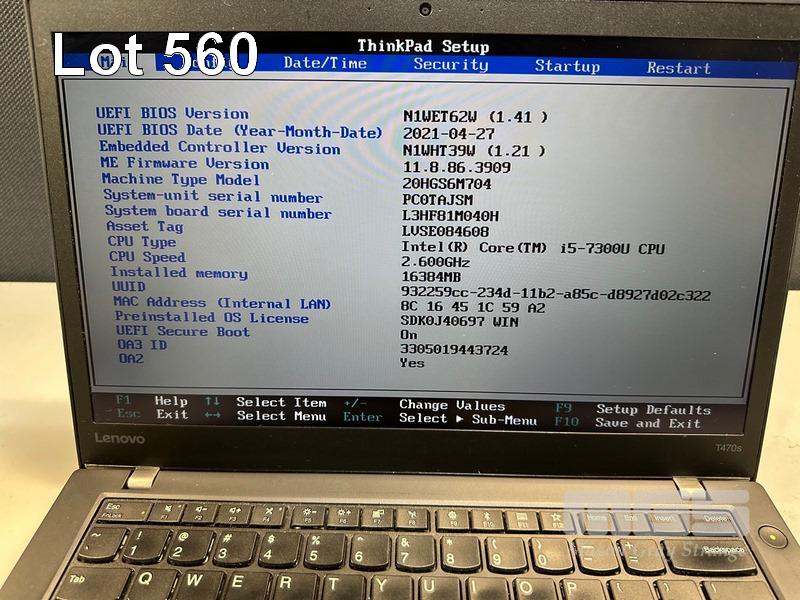 LAPTOP, LENOVO THINKPAD T470s, TYPE 20HG, CORE i5 7300U (7TH GEN) @ 2.6GHz, 16GB DDR4 RAM, 256GB NVMe M.2 SSD, 14" TOUCHSCREEN (1920x1080), INTEL HD VIDEO, Wi-Fi, BLUETOOTH, WINDOWS 10 PRO INSTALLED & POWER SUPPLY (NOTE: MARKS ON SCREEN) S/N:PC0TAJSM