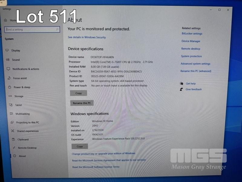 TINY-IN-ONE PC, LENOVO THINKCENTRE M710q, CORE i5 7500T (7TH GEN) @ 2.7GHz, 8GB DDR4 RAM, 256GB NVMe M.2 SSD, TIO24Gen3 23.8" LED-BL LCD WIDESCREEN, WEBCAM, Wi-Fi, WINDOWS 10 HOME INSTALLED & POWER SUPPLY (NO KEYBOARD, NO MOUSE) S/N:PC0SCU5B