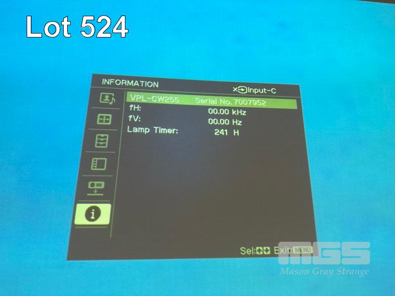 PROJECTOR, SONY VPL-CW255, 4,500 LUMENS, 241 HOURS SHOWING (NO REMOTE) S/N:7007952