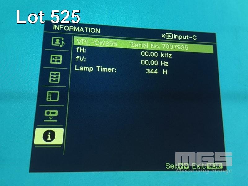PROJECTOR, SONY VPL-CW255, 4,500 LUMENS, 344 HOURS SHOWING (NO REMOTE) S/N:7007935