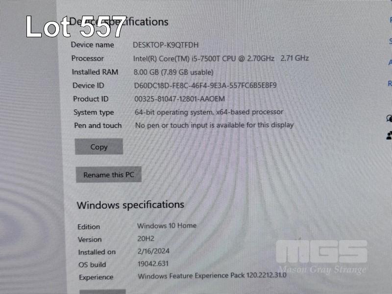 TINY-IN-ONE PC, LENOVO THINKCENTRE M710q, CORE i5 7500T (7TH GEN) @ 2.7GHz, 8GB DDR4 RAM, 256GB NVMe M.2 SSD, TIO24Gen3 23.8" LED-BL LCD WIDESCREEN, WEBCAM, Wi-Fi, WINDOWS 10 HOME INSTALLED & POWER SUPPLY (NO KEYBOARD, NO MOUSE) (NOTE: SCRATCHES ON SCREEN) S/N:PC0SCU3Q