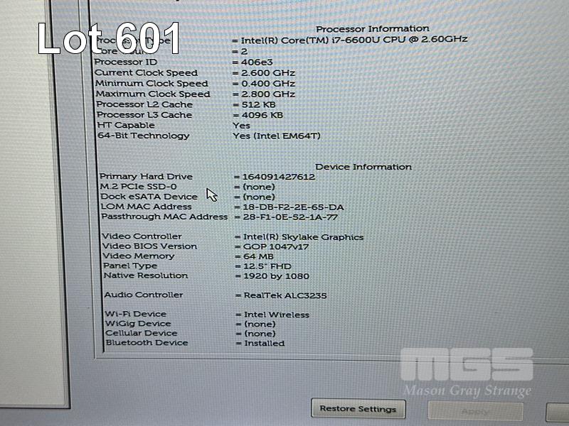 LAPTOP, DELL LATITUDE E7270, CORE i7 6600U (6TH GEN) @ 2.6GHz, 16GB DDR4 RAM, 256GB M.2 SSD, 12.5" WIDESCREEN (1920x1080), INTEL SKYLAKE GRAPHICS, Wi-Fi, BLUETOOTH, WINDOWS 10 HOME INSTALLED & POWER SUPPLY S/N:129BCG2