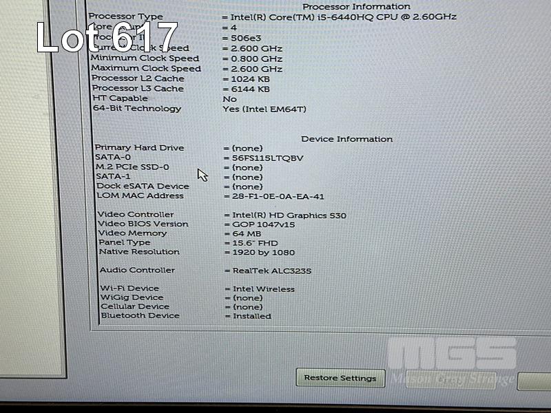 LAPTOP, DELL LATITUDE E5570, CORE i5 6440HQ (6TH GEN) @ 2.6GHz, 8GB DDR3 RAM, 256GB M.2 SSD, 15.6" WIDESCREEN (1920x1080), INTEL SKYLAKE GRAPHICS, Wi-Fi, BLUETOOTH, WINDOWS 10 HOME INSTALLED (NO POWER SUPPLY) (NOTE: 1 x USB PORT FAULTY, MARKS ON SCREEN) S/N:1H7RGC2