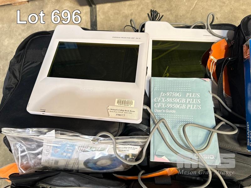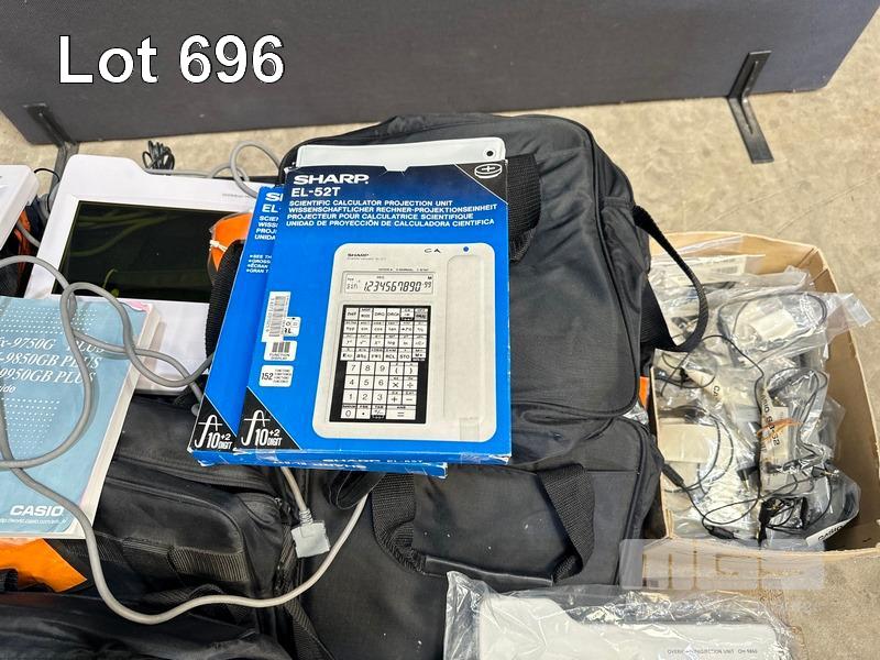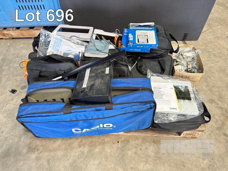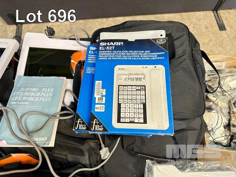 1 x PALLET LOT CALCULATOR PROJECTION UNITS, CASIO OH-9860, CASIO OH-15, SHARP EL-52T, CARRY BAGS ETC