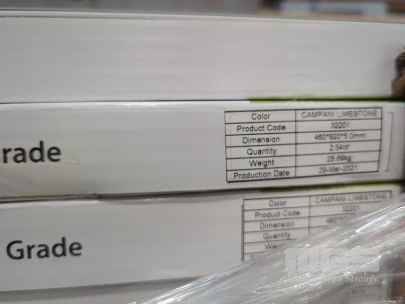 10 x PACKS HYBRID STONE FLOORING, CAMPANI LIMESTONE PATTERN. SIZE 920 X 460 X 5 MM (W D H). 2.54 M2 PER BOX. 25.4 M2 TOTAL. ALL NEW PACKS.