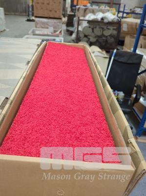 8 X PACKS OF CUT PILE CARPET PLANKS. SIZE 100 X 25 CM (W D). COLOUR PERSIMMON (RED). 32 M2 TOTAL.