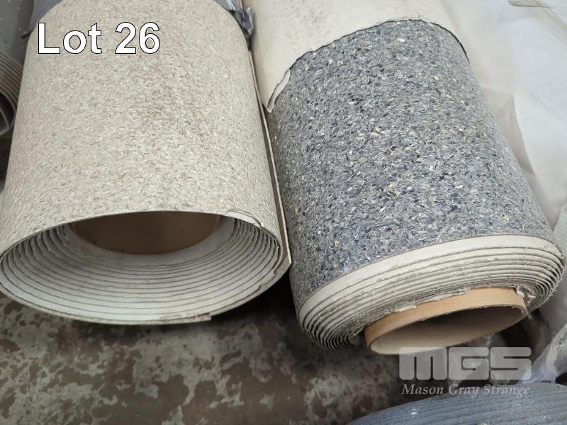 2 X ROLLS SHEET VINYL FLOORING. 1@ TEXTURED SLIP RESISTANT SAFETY FLOORING IN LIGHT GREY. 1.8 X 8 M (W L) APPROX. 1@ TEXTURED SLIP RESISTANT SAFETY FLOORING IN CREAM. 1.8 X 7 M (W L) APPROX.