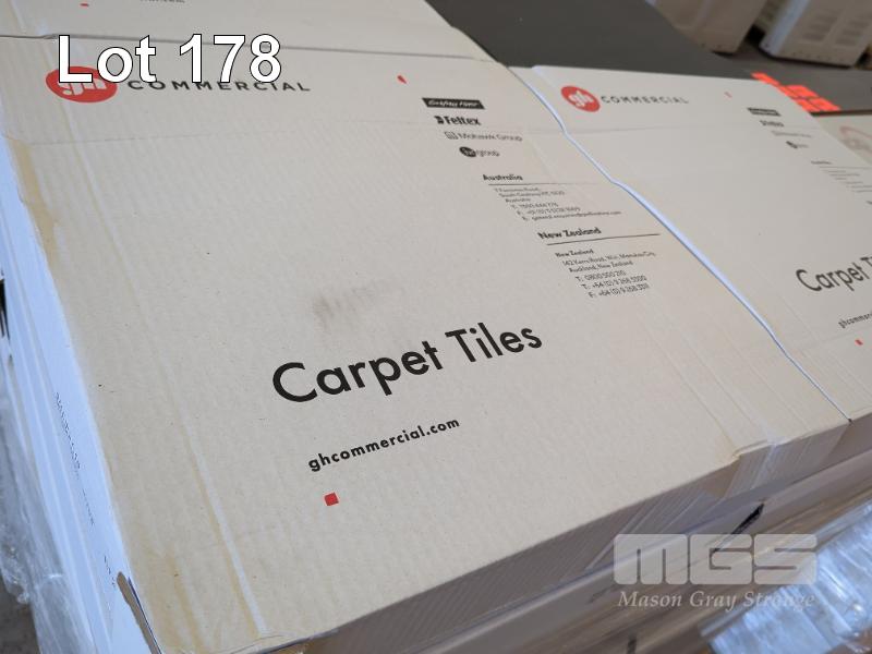 5 X BOXES 50 X 50 CM COMMERCIAL CARPET TILES. 5 M2 PER BOX. 25 M2 TOTAL. ALL NEW IN BOX