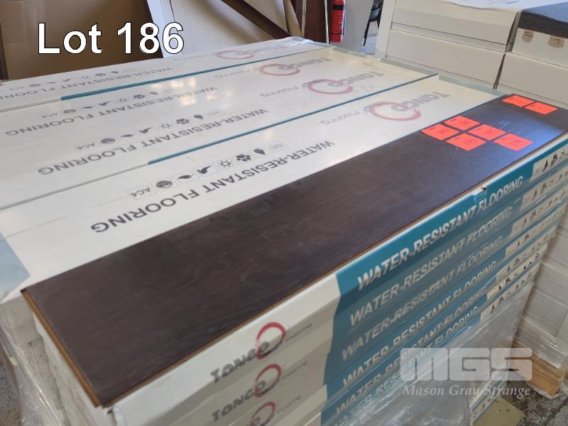 10 PACKS OF 8.0 MM WATER-RESISTANT LAMINATE FLOORING IN COLOUR CHARCOAL. SIZE 1,215 X 195 X 8 MM (W D H). 1.895 M2 PER BOX. 18.95 M2 TOTAL. ALL NEW PACKS.