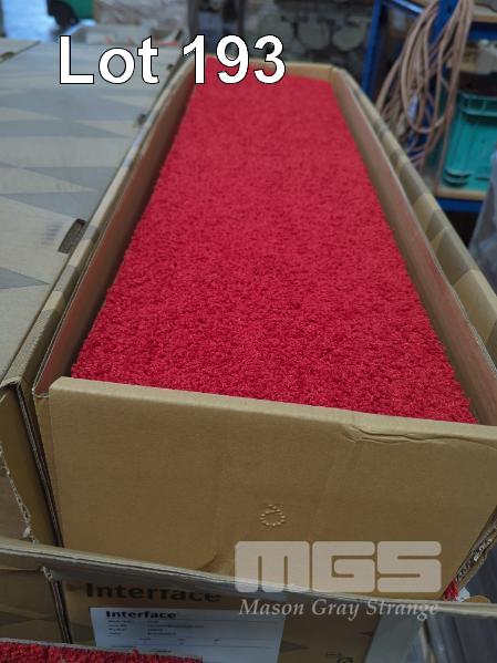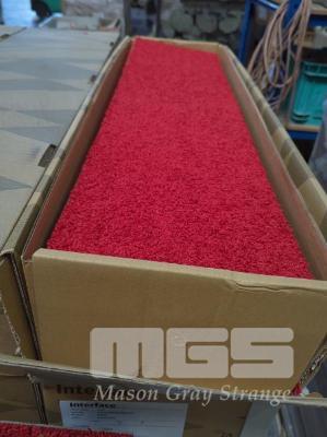 8 X PACKS OF CUT PILE CARPET PLANKS. SIZE 100 X 25 CM (W D). COLOUR PERSIMMON (RED). 32 M2 TOTAL.