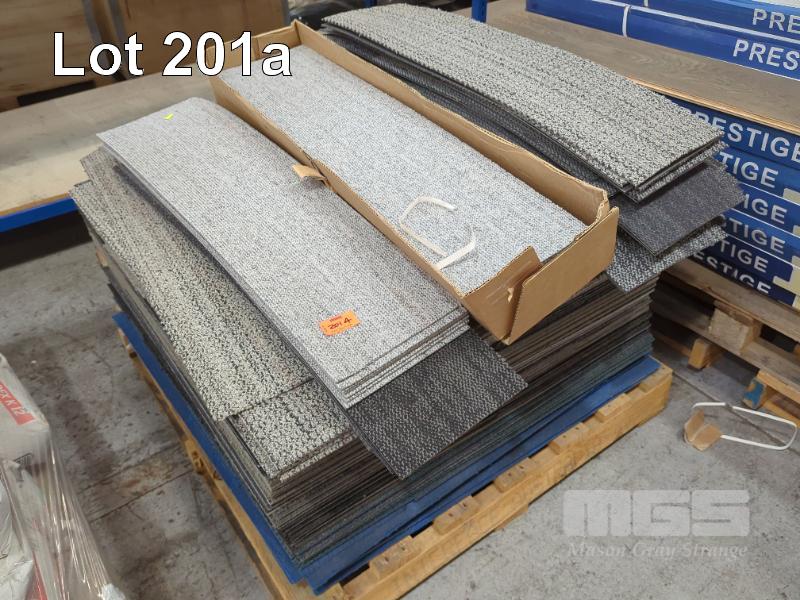 QUANTITY OF CARPET PLANKS. MIXED TYPES. GREY AND BLUE. ESTIMATED 400 UNITS. (1 X PALLET).