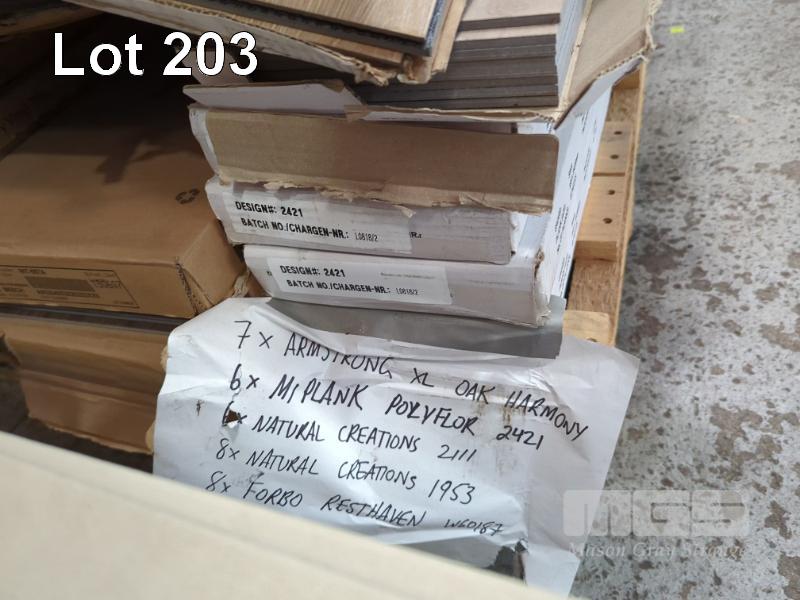 QUANTITY OF ASSORTED VINYL FLOOR PLANKS. MIXED BRANDS AND TYPES. MOST LENGTHS 1.5 M. ESTIMATED 25 PACKS.(1 X PALLET).